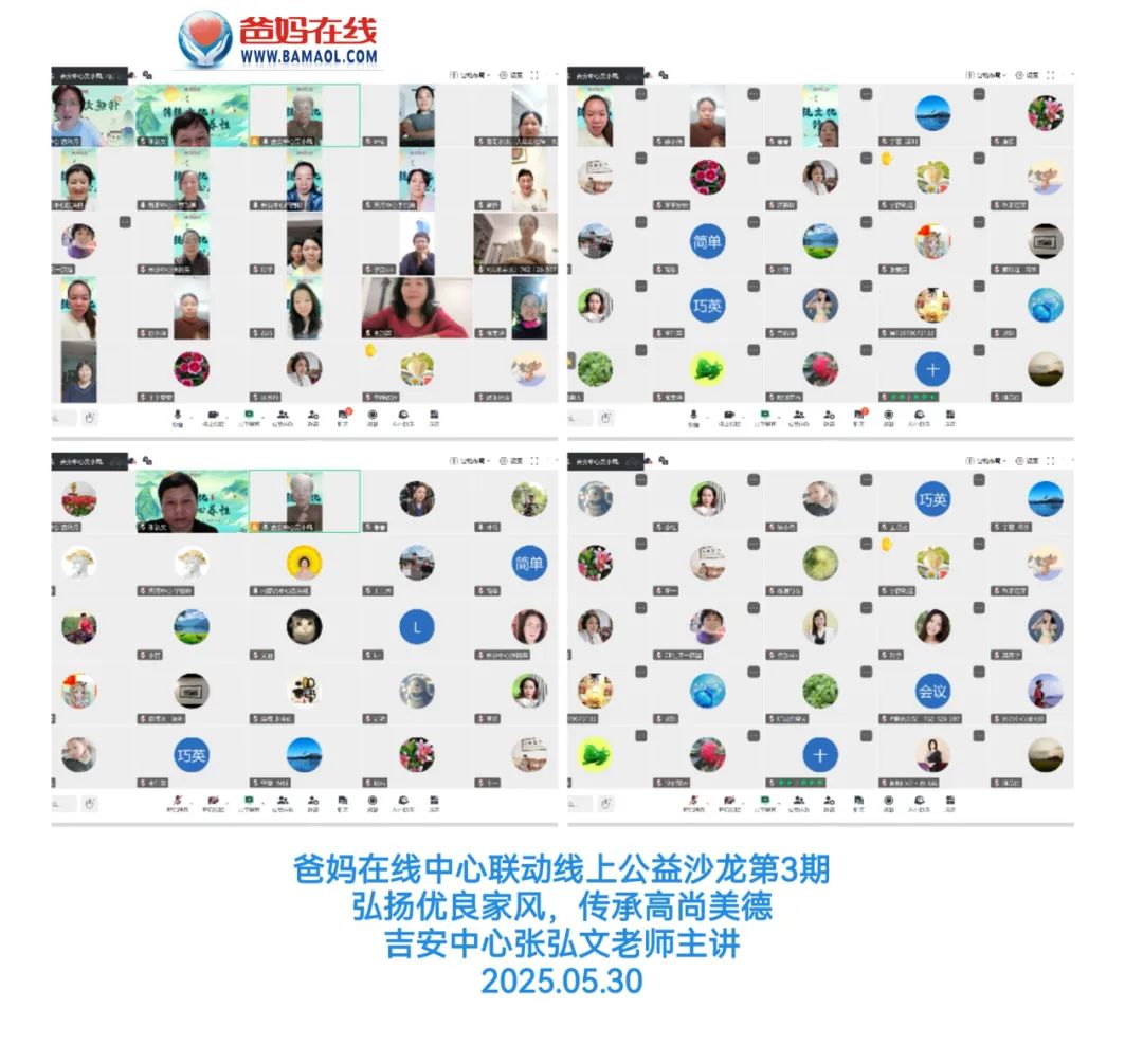 5月30日晚7點30分,由爸媽在線江西吉安中心發(fā)起,張弘文老師傾情主講的“弘揚優(yōu)良家風,傳承高尚美德——看三蘇家風家教”線上公益沙龍活動成功舉辦。此次活動由內蒙等八個爸媽在線中心協(xié)同組織,四十余位學員齊聚云端,共同開啟了一場關于千年家風的智慧之旅。